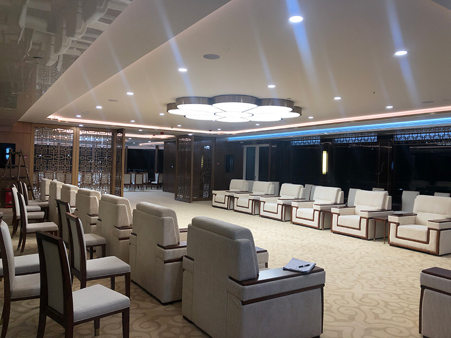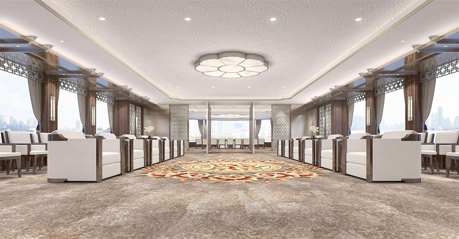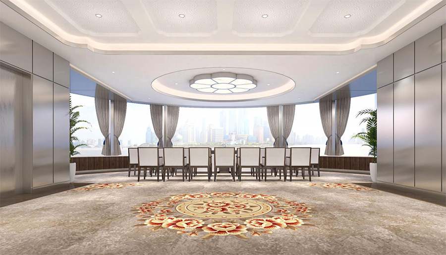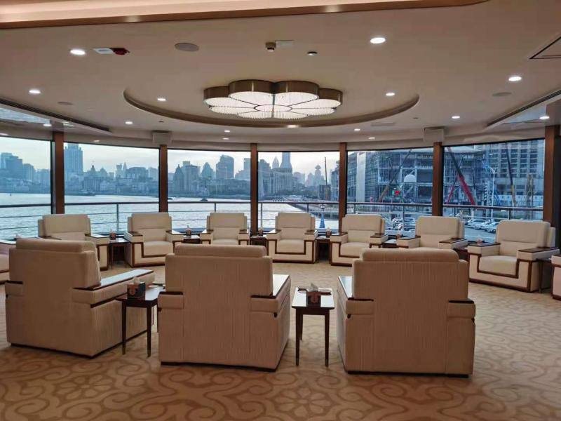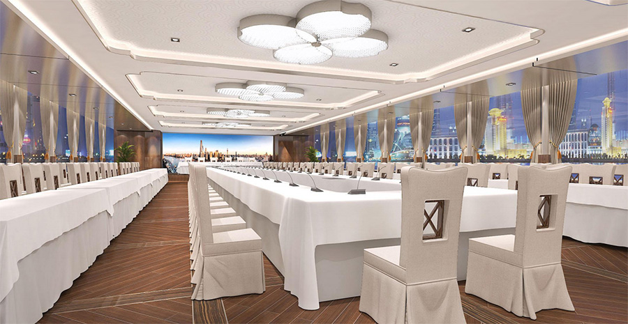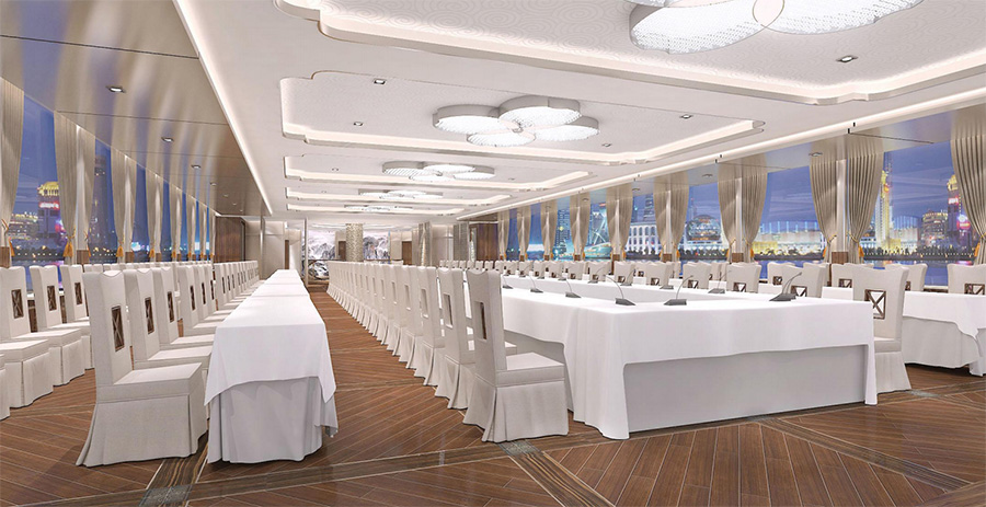 “申城之光”是上海道胜建筑装饰工程有限公司在建项目之一。设计方案的划分要求具有良好的延展性、松耦合性、功能的多样化、融合性。定位主要 以政府专项高规格接待为主,兼顾观光游览、商务会谈、婚礼庆典、以及企业年会作为船舶的功能定位。