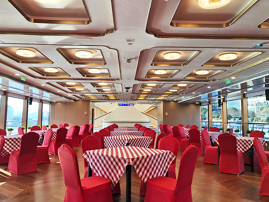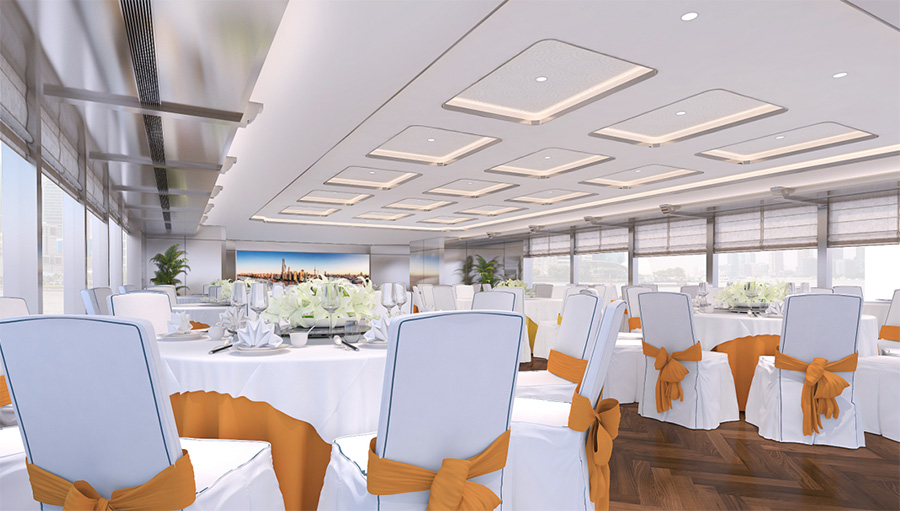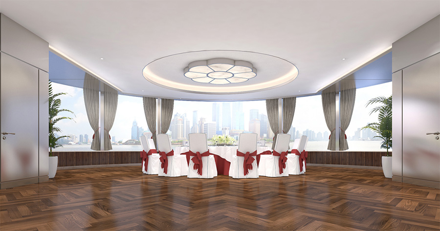 我们在充分分析目前国内外游船的特征,及行业风格,并结合现有黄浦江上游船的配置。我们提出了一个设计方向:以中国传统“简约中式风”的设计思路来体现不同的空间感觉。综上所述,本船的定位以高级游览用船为指导原则。围绕这个原则展开的方案取向,为国内外游客们提供一个多样的选择。目的就是做出一个独一无二的标杆性游船空间。