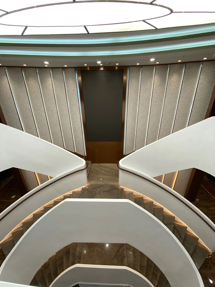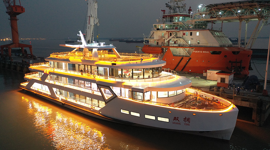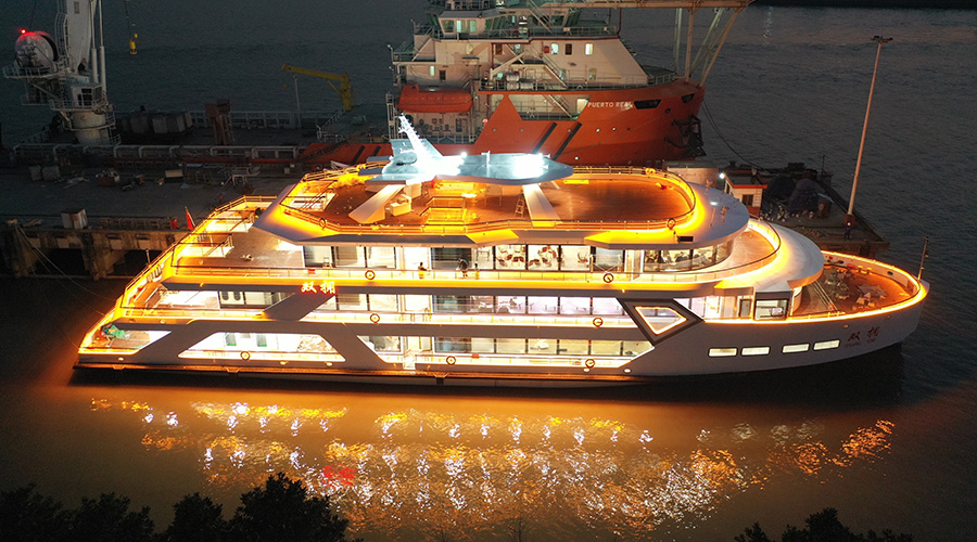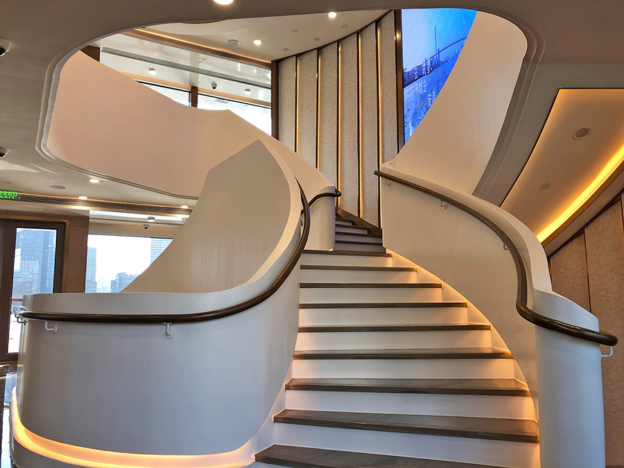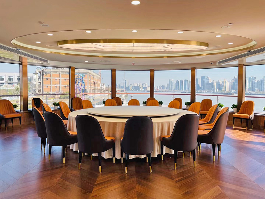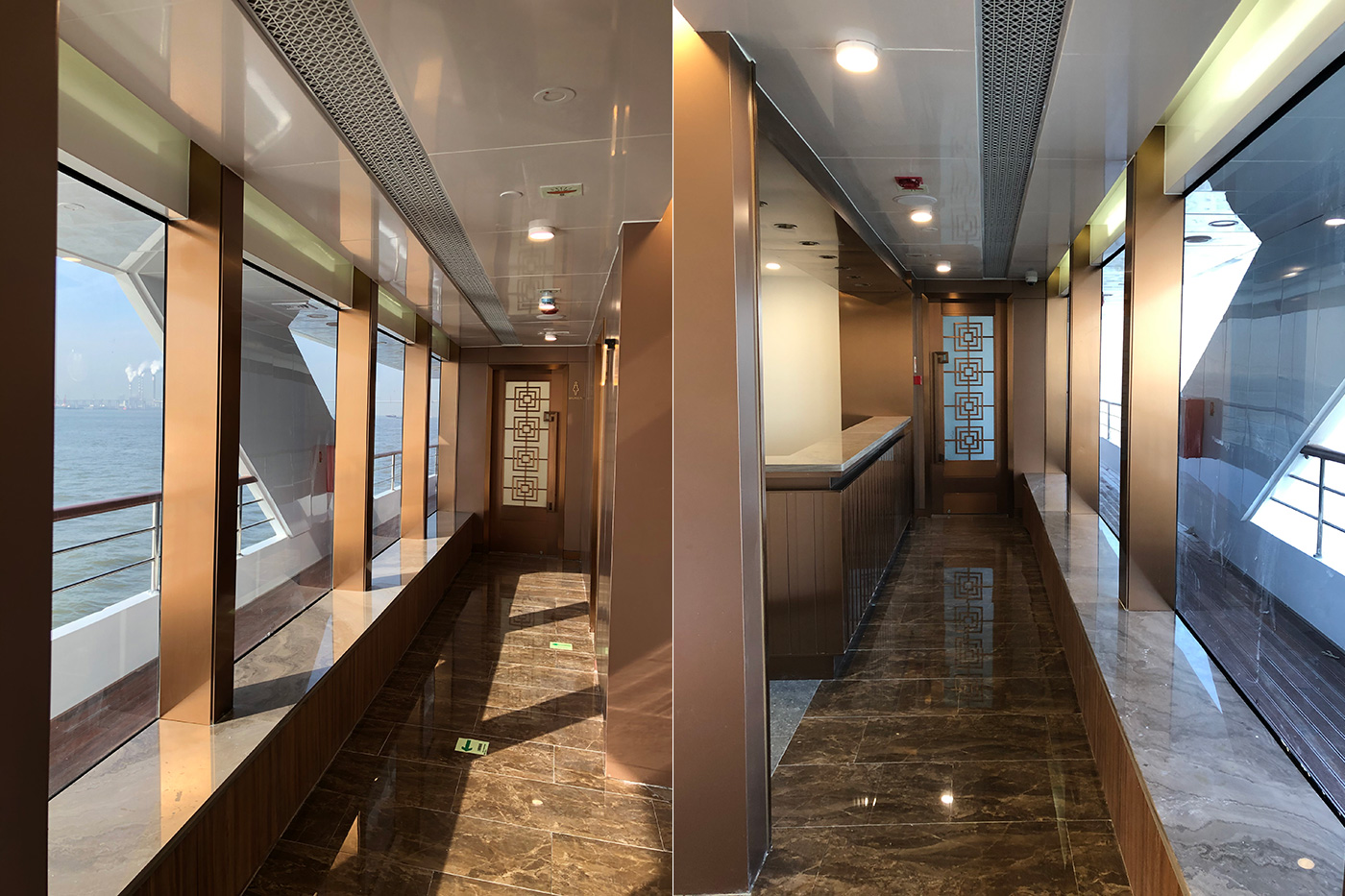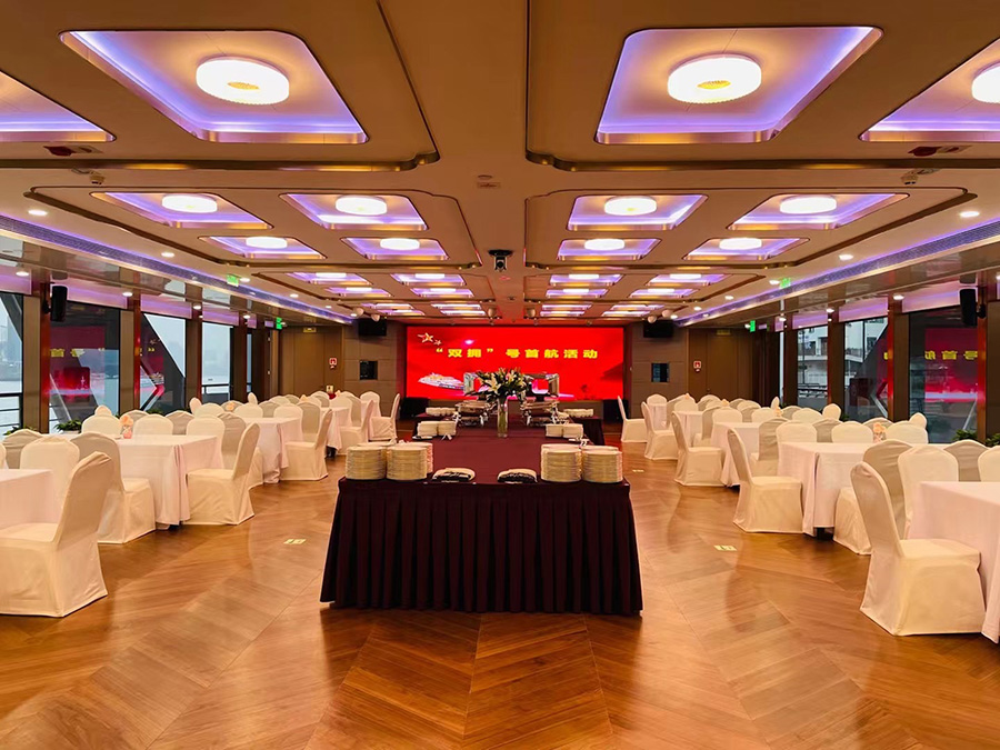 风采公司“双拥号”游轮是上海道胜建筑装饰工程有限公司在建项目之一。设计方案的划分要求具有良好的延展性、松耦合性、功能的多样化、融合性。定位主要 以政府专项高规格接待为主,兼顾观光游览、商务会谈、婚礼庆典、以及企业年会作为船舶的功能定位。